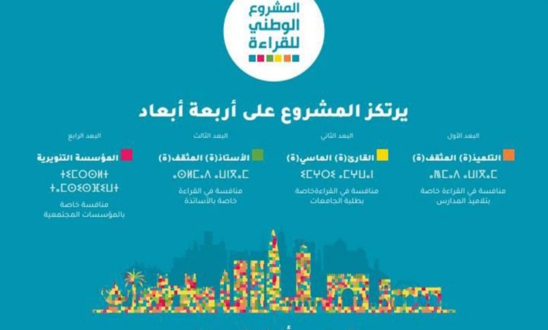 ويرتكز المشروع حسب الهيئة المنظمة، على أربعة أبعاد تضم بعد التلميذ المثقف والذي ستتم من خلاله منافسة في القراءة خاصة بتلاميذ المدارس، والبعد الثاني الذي أطلق عليه القارئ الماسي والذي ستنحصر فيه المنافسة على طلبة الجامعات، فيما سيعرف البعد الثالث الذي أطلق عليه الأستاذ المثقف منافسة في القراءة خاصة بالأساتذة، أما البعد الرابع الذي سيعرف بالمؤسسة التنويرية فستكون المنافسة فيه خاصة بالمؤسسات المجتمعية.