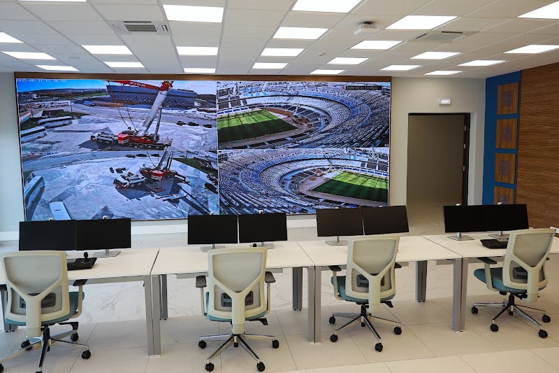 وعلى مستوى البنية التحتية التقنية، أكد العمراوي أن الملعب مجهز بمركز عمليات مراقبة يعتمد على نحو 900 كاميرا داخلية وخارجية، مدعمة بتقنيات حديثة للتعرف على الوجوه. كما يتوفر على شاشتين عملاقتين بمساحة 220 مترا مربعا لكل واحدة، وشاشة محيطية طولها يتجاوز 700 متر طولي، ونظام صوتي متطور، فضلا عن قاعات تقنية لتدبير الوسائط المرئية، مع برمجة شاشتين محيطيتين إضافيتين.