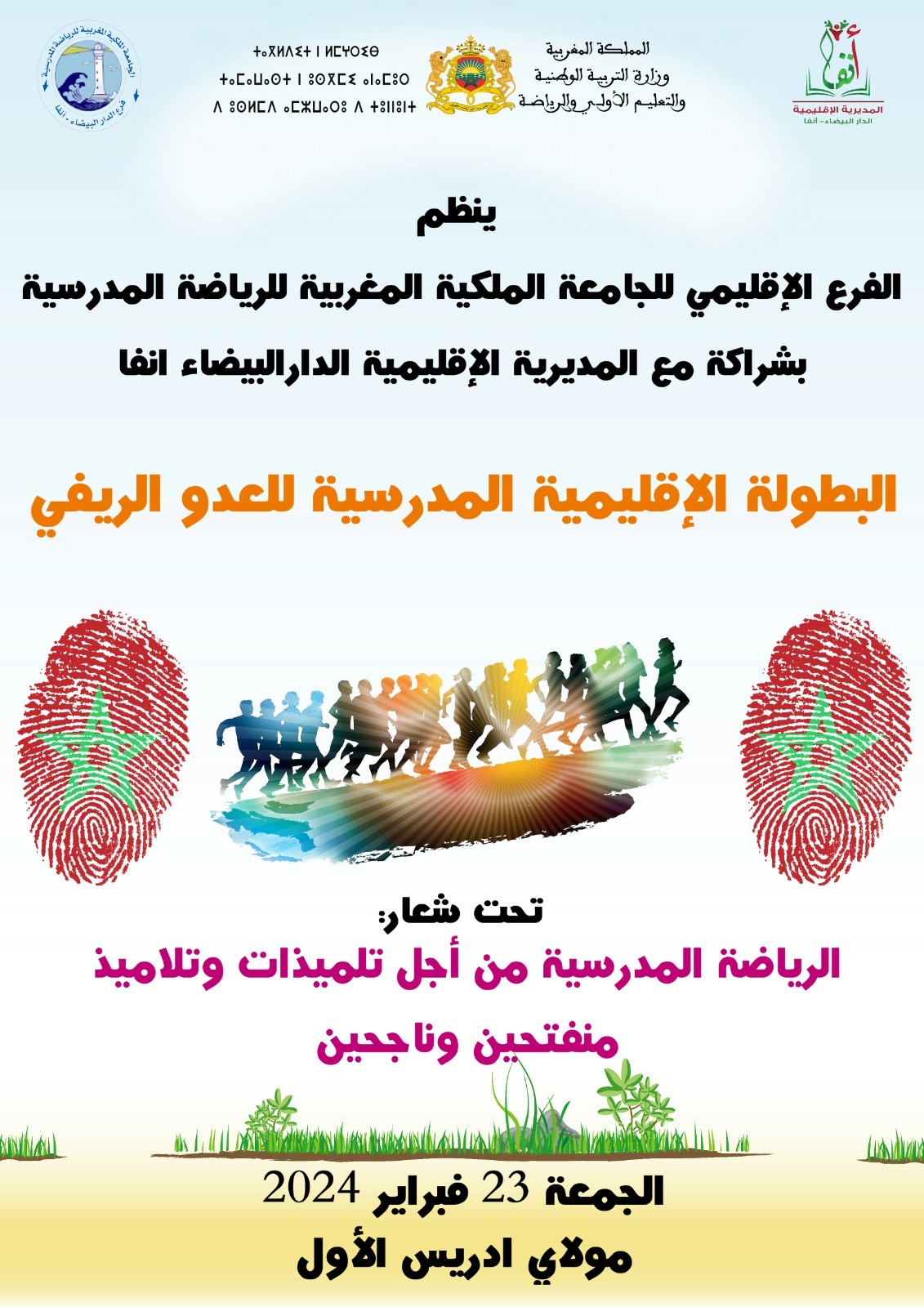 نظم فرع الجامعة الملكية المغربية بشراكة مع المديرية الإقليمية الدار البيضاء-آنفا، صباح اليوم الجمعة، البطولة الإقليمية للعدو الريفي المدرسي، بالثانوية التأهيلية مولاي إدريس الأول، تحت شعار”الرياضة المدرسية من أجل تلميذات وتلاميذ منفتحين وناجحين”.